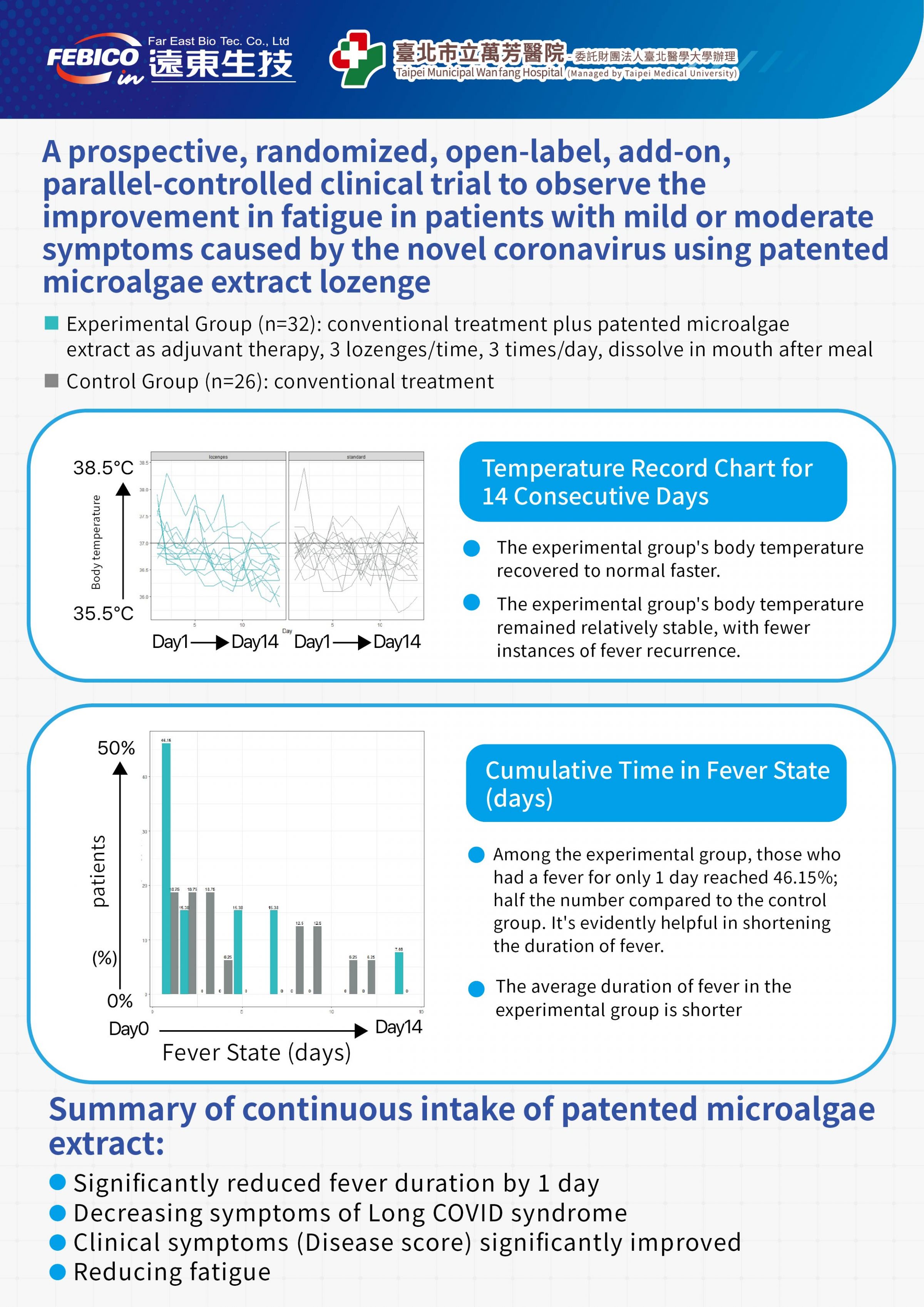 - Reduced Fatigue: The data confirmed that continuous intake of the patented microalgae extract lozenge was effective in decreasing symptoms of Long COVID syndrome and reducing fatigue.